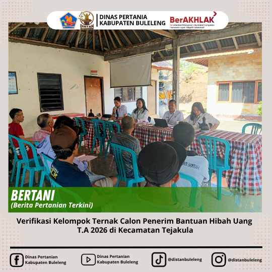Pada Hari ini, 22 Oktober 2025 Tim Verifikasi dari Bidang Peternakan dan Kesehatan Hewan bersama Tim dari Bidang Perencanaan Dinas Pertanian Kabupaten Buleleng melanjutkan kegiatan verifikasi kelompok yang berlokasi di Kecamatan Tejakula. Kegiatan ini merupakan bagian dari tahapan validasi proposal bantuan hibah uang TA.2026