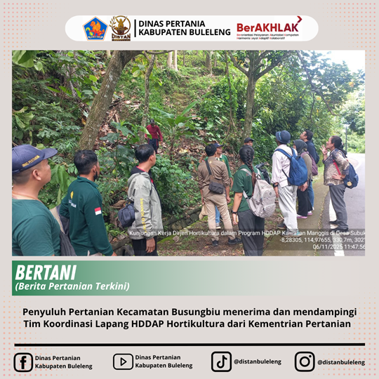 Mewakili Koordinator Petugas Pertanian Kecamatan Busungbiu sehubungan dengan kegiatan HDDAP pada kawasan kampung manggis di Ke Camatan Busungbiu pada hari ini Kamis tanggal 6 Nopember 2025 berlangsung dari Pukul 09.30 Wita S/d selesai kami Para Petugas Pertanian dan atau para Penyuluh Pertanian Kecamatan Busungbiu menerima dan mendampingi Tim Koordinasi Lapang HDDAP Hortikultura dari Kementrian Pertanian untuk Kabupaten Buleleng bertempat di Ruang Pertemuan BPP. Busungbiu.