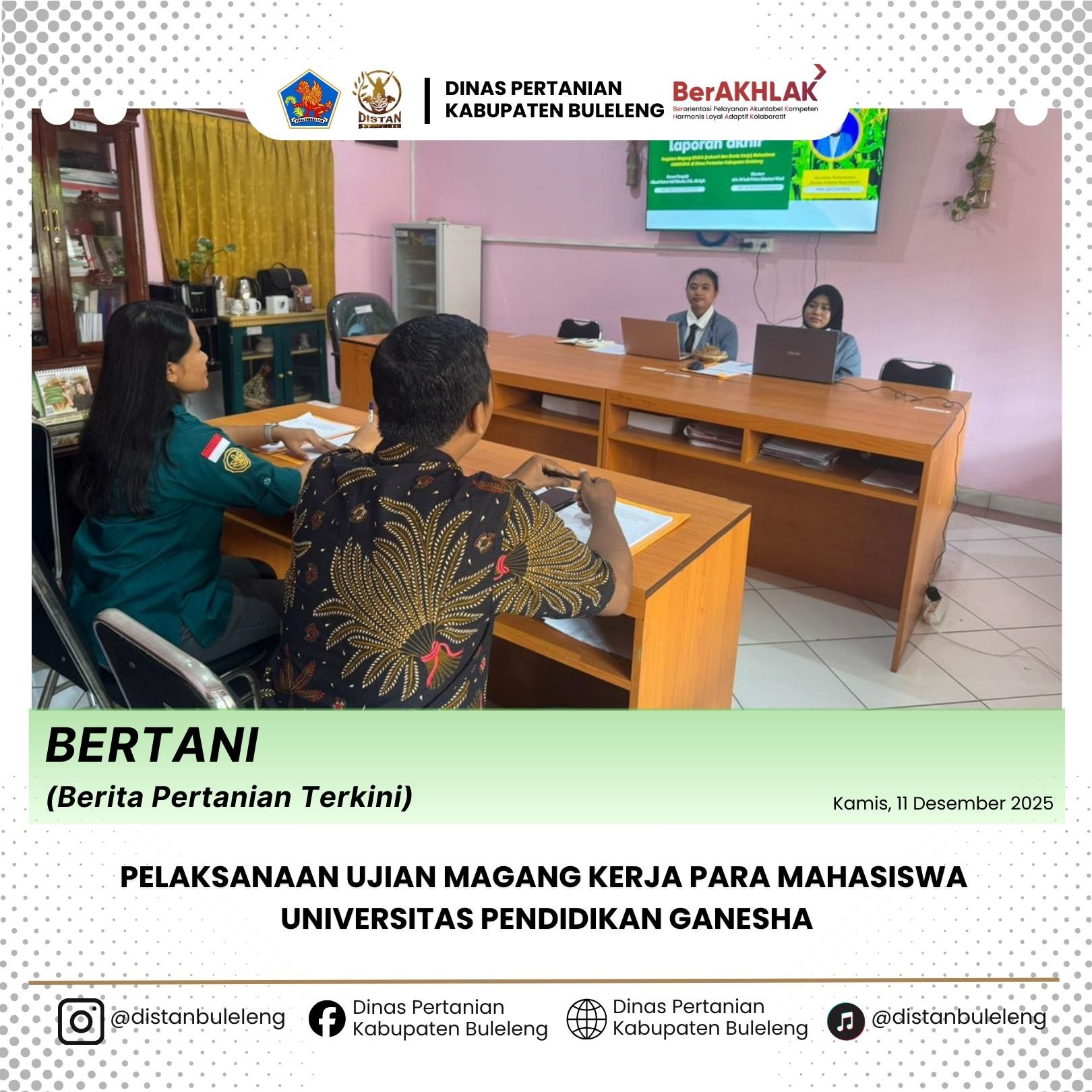 Dinas Pertanian Kabupaten Buleleng melaksanakan ujian magang Mahasiswa Universitas Pendidika Ganesha.
