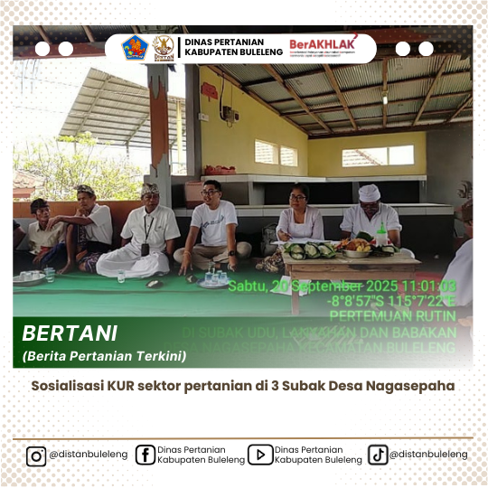 Dinas Pertanian melalui Bidang PSP melaksanakan sosialisasi KUR sektor pertanian di 3 Subak Desa Nagasepaha, yang dimana kegiatan ini juga menghadirkan pihak Bank BRI dan Bank BPD Bali.