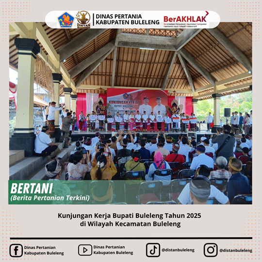 Kepala Dinas Pertanian Kabupaten Buleleng menghadiri kegiatan penyerahan secara simbolis bantuan hibah uang dalam rangka Kunjungan Kerja Bupati dan Wakil Bupati Buleleng Tahun 2025 di Kecamatan Buleleng, Sukasada, dan Banjar. Kegiatan tersebut dilaksanakan di Wantilan Binaria Lovina, Kecamatan Buleleng. (3/11)