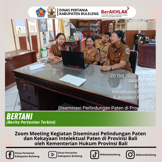 Diikuti Oleh Koordinator POPT Kab. Buleleng, PMHP Bidang Tanaman Pangan dan 2 Penata Layanan Operasional di Bidang TP. Webinar dengan tema melalui pendaftaran paten kita tingkatkan perlindungan inovasi teknologi berkelanjutan. Bahwa berdasarkan data kekayaan intelektual perguruan tinggi menyumbang lebih dari 20% pengajuan permohonan hak intelektual paten. Paten sebagai indikator kemajuan suatu negara. Perubahan pada Undang-Undang Nomor 13 Tahun 2016 tentang Paten bertujuan menyederhanakan proses pendaftaran dan memperkuat sistem paten di Indonesia, yang sejalan dengan perkembangan hukum internasional dan kebutuhan masyarakat. (20/10)