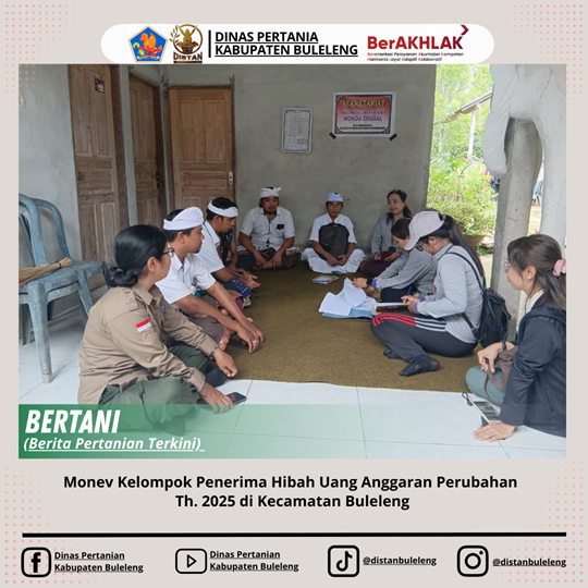 Dalam kegiatan monev ini, tim tetap didampingi oleh Koordinator BPP, Penyuluh Pertanian Lapangan (PPL), serta Medik Veteriner Dinas Pertanian Kabupaten Buleleng.