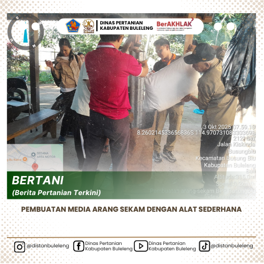 Kegiatan pembuatan arang sekam di BPP Busungbiu dilaksanakan sebagai salah satu upaya penyediaan media tanam alternatif untuk mendukung pembibitan kakao. Sekam padi yang biasanya dianggap sebagai limbah pertanian dimanfaatkan kembali melalui proses pengolahan sederhana menggunakan drum kaleng. Pemanfaatan sekam menjadi arang sekam ini sangat penting karena mampu meningkatkan porositas media tanam, memperbaiki aerasi, serta mendukung perkembangan akar bibit kakao. (3/10)