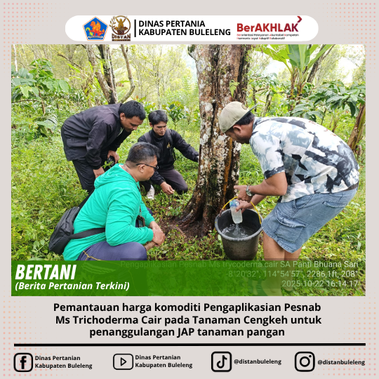 Rabu 22 Oktober 2025, berlokasi di Subak Abian Panti Bhuana Sari Banjar Dinas Bujak Desa Sepang Kelod, menindak lanjuti , Berita atau artikel PPL WiLbin Desa Sepang Kelod tanggal 23 September 2025, bersama staf Bidang Perkebunan , 2 Penata Layanan Operasional dan 1 Pengadministrasian perkantoran