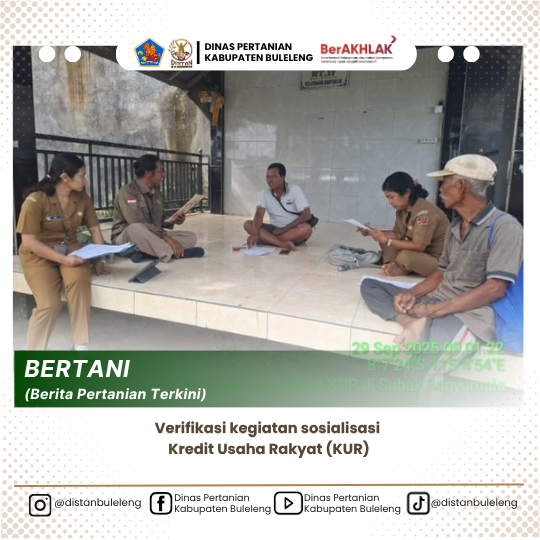Analis PSP bersama staf dan didampingi oleh PPL Wilbin melakukan verifikasi kegiatan sosialisasi Kredit Usaha Rakyat (KUR) sektor pertanian di Subak Banyumala, Kecamatan Buleleng.