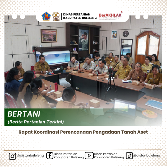 Kepala Dinas Pertanian Kabupaten Buleleng memimpin pelaksanaan rapat koordinasi dalam membahas persiapan dan perencanaan pengadaan tanah calon aset peruntukan lahan pembangunan kantor Balai Penyuluhan Pertanian (BPP) Tejakula yang direncanakan akan berlokasi di Desa Bondalem, Kecamatan Tejakula.