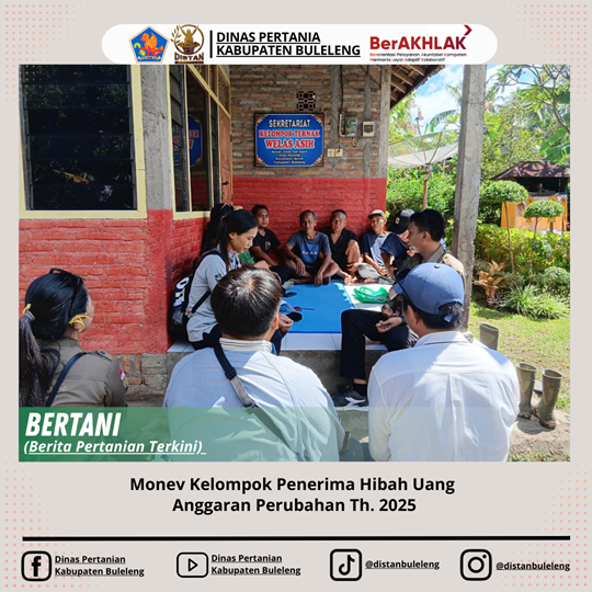 Pada hari ini, Rabu 3 Desember 2025, Tim Monev Bidang Peternakan dan Kesehatan Hewan telah melaksanakan kegiatan monitoring dan evaluasi terhadap sejumlah kelompok penerima bantuan hibah uang Anggaran Perubahan Tahun 2025. Kegiatan ini berlangsung di Kecamatan Seririt dan Kecamatan Gerokgak, Kabupaten Buleleng, dan didampingi langsung oleh Koordinator BPP, PPL serta Medik Veteriner Dinas Pertanian Kabupaten Buleleng di masing-masing wilayah binaan.