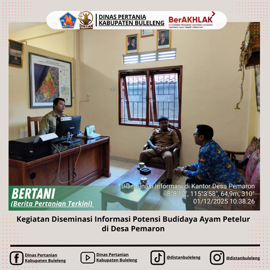 Kegiatan diseminasi informasi mengenai potensi budidaya ayam petelur di Desa Pemaron dilaksanakan sebagai upaya peningkatan pengetahuan dan pemahaman masyarakat terhadap peluang usaha peternakan yang berkelanjutan. Kegiatan ini memiliki peran penting dalam penyebaran informasi dan penguatan program pembangunan desa.