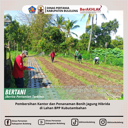 Pada hari Jumat, 31 Oktober 2025 telah dilaksanakan kegiatan pembersihan kantor dan penanaman Jagung di Lahan Milik BPP Kubutambahan. Kegiatan ini dilakukan oleh pegawai BPP Kubutambahan.