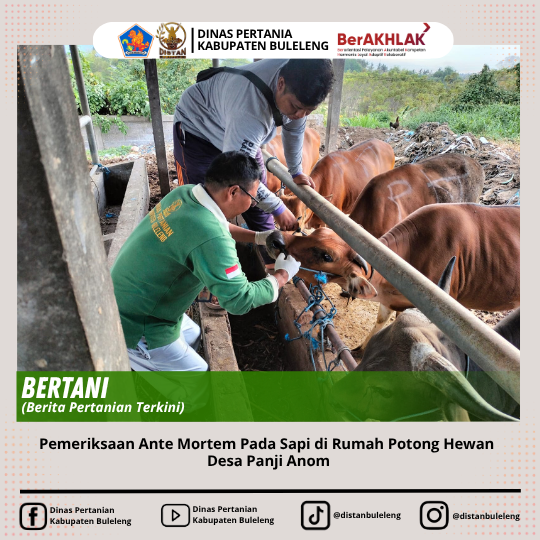 Selasa, 21 Oktober 2025 petugas medik Peteriner drh. I Nyoman Sarsana melaksanakan Pemeriksaan ante mortem yang meliputi pemeriksaan dengan melalui berbagai metode, yaitu inspeksi, palpasi, auskultasi. Inspeksi adalah bagaimana melakukan pemeriksaan terhadap hewan melalui pengamatan fisik luar dengan cara melihat tanpa menyentuhnya. Inspeksi ini melihat secara terbuka seluruh tubuh hewan. Biasanya akan terlihat dari sikap berdiri, keadaan matanya, ekornya serta kesempurnaan anggota tubuh dan lain sebagaianya. Palpasi yaitu melakukan pemeriksaan dengan menyentuh, sebagai contoh yaitu pemeriksaan rongga mulut untuk mengetahui keadaan giginya sudah powel atau belum, meraba lokasi lokasi limfoglandula ada pembengkaan atau tidak, memeriksa kelopak mata untuk melihat apakah ada indikasi anemia ataukah tidak, pemeriksaan suhu tubuh menggunakan alat termometer khusus yang dimasukkan ke lubang anus sapi untuk mengetahui suhu tubuh sapi masuk kategori normal ataukah demam ataukah subnormal (di bawah normal), memeriksa bagian kulit untuk memeriksa bagian yang gatal-gatal (gudiken, bahasa jawa) atau tidak, dan lain sebagainya. Auskultasi merupakan pemeriksaan denga menggunakan alat berupa stetoskop di permukaan tubuh tepat di permukaan rongga dada, dan abdomen (perut), dan diselingi dengan proses perkusi (mengetuk permukaan luar rongga, untuk memastikan suara ketukan apakah ada kelainan atau tidak). Hal ini guna untuk memastikan keadaan fisiologis dari organ dalam hewan. Hal – hal di atas merupakan hal yang sangat penting untuk menjamin dan memastikan bahwa hewan ternak sapi yang akan disembelih benar-benar sehat. Karena hewan yang sehat merupakan salah satu syarat syahnya hewan tersebut digunakan atau di konsumsi.